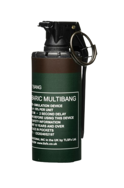 The M11 is a multiple bang device that gives the operator an advantage when entering a situation where a target needs to be distracted into believing the assault has started from multiple entry points. There are seven rapid consecutive bangs with bright flashes.